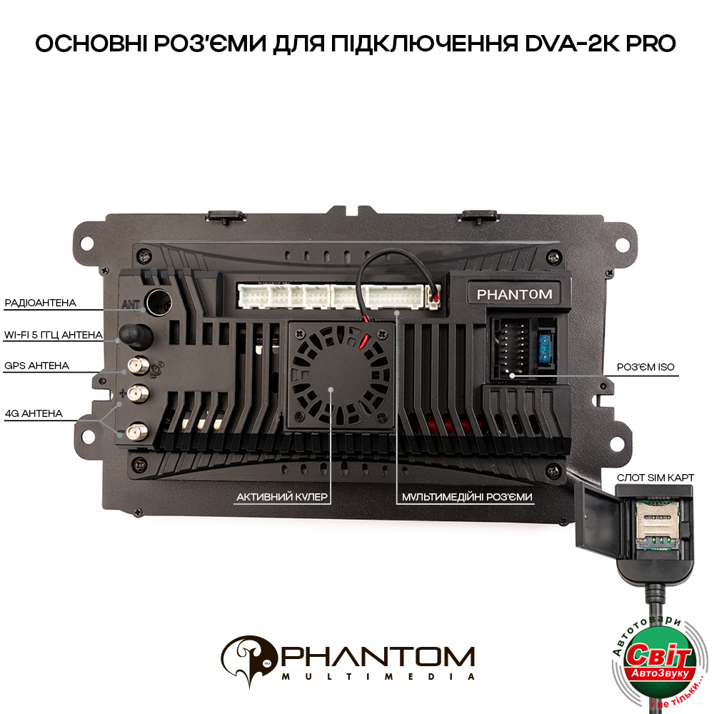 PHANTOM DVA-2K9 Pro 4G 360° 4+64 VW Universal має вбудований 4G модем, дводіапазонний Wi-Fi та додаток Телефон.