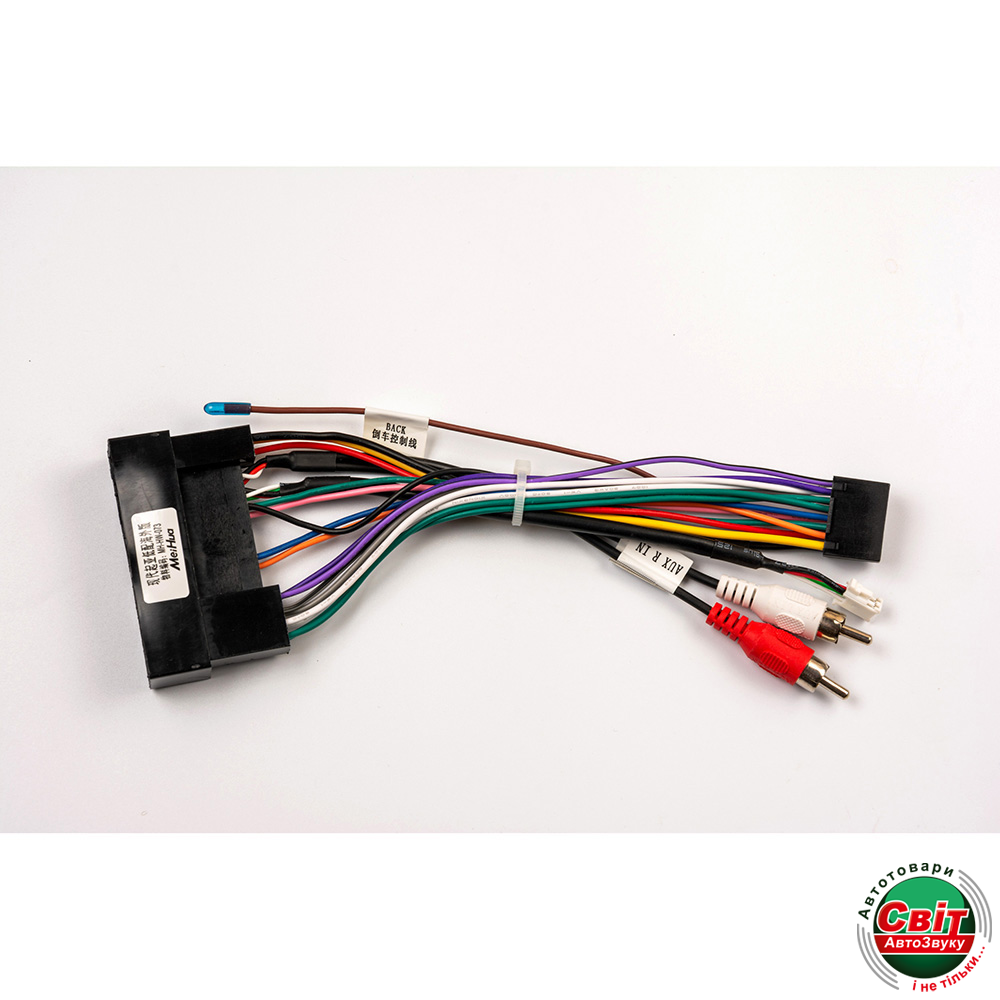7.Кабель RCA «TV L in», «TV R in», «TXD» (вихід на CAN-адаптер), «RXD» (вихід на CAN-адаптер), «Power 12V» (живлення 12 В для додаткового пристрою), «Ground» (земля для додаткового пристрою).