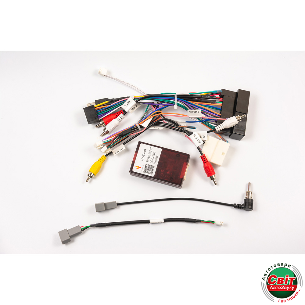 7.Кабель RCA «TV L in», «TV R in», «TXD» (вихід на CAN-адаптер), «RXD» (вихід на CAN-адаптер), «Power 12V» (живлення 12 В для додаткового пристрою), «Ground» (земля для додаткового пристрою).