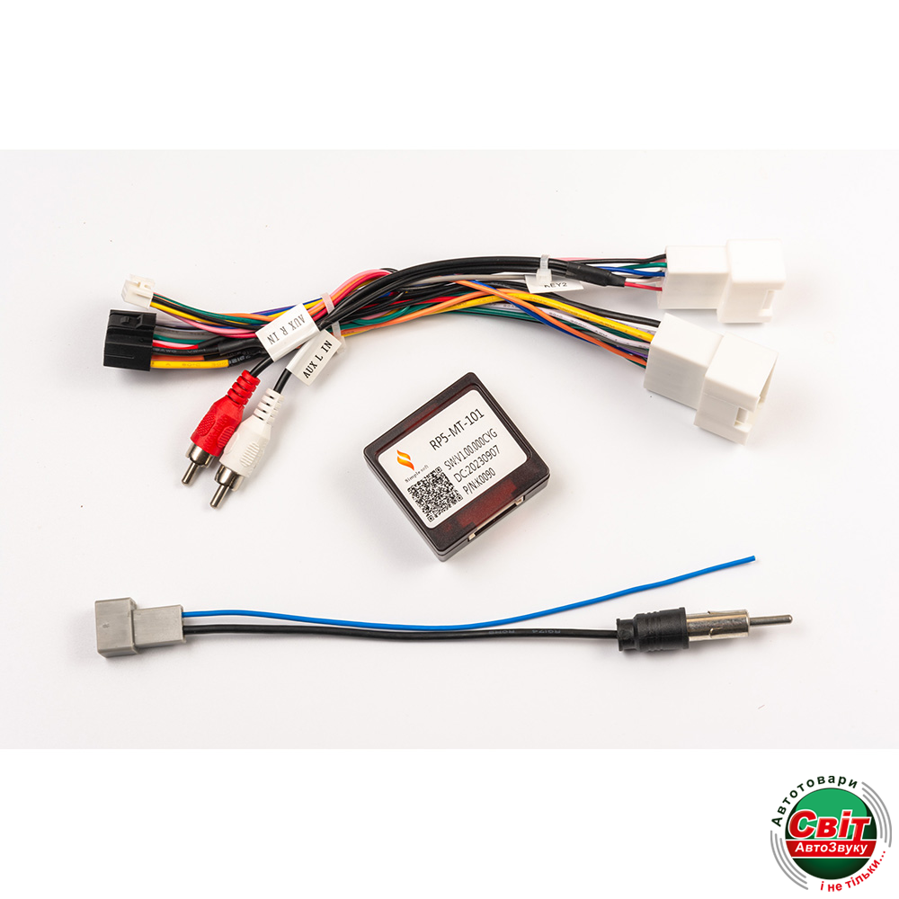 5.Кабель RCA «Aux Video IN», RCA «TV Video IN», вхід для зовнішнього мікрофону «Mic», «Brake» (гальмо), TPMS-RXD, TPMS-TXD, антена Bluetooth, антена Wi-Fi (2,4 ГГц).