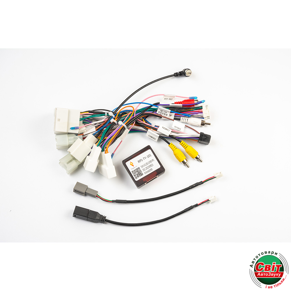 7.Кабель RCA «TV L in», «TV R in», «TXD» (вихід на CAN-адаптер), «RXD» (вихід на CAN-адаптер), «Power 12V» (живлення 12 В для додаткового пристрою), «Ground» (земля для додаткового пристрою).