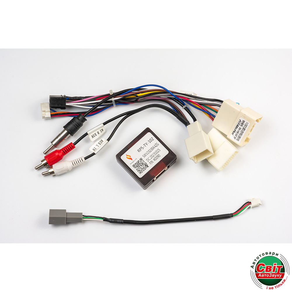7.Кабель RCA «TV L in», «TV R in», «TXD» (вихід на CAN-адаптер), «RXD» (вихід на CAN-адаптер), «Power 12V» (живлення 12 В для додаткового пристрою), «Ground» (земля для додаткового пристрою).