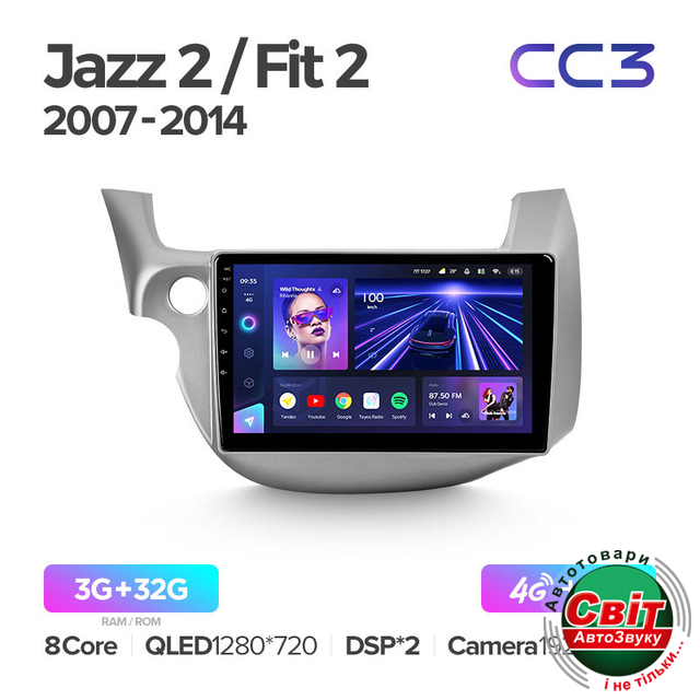 Автомагнітола штатна Teyes CC3 3+32 Gb Honda Jazz 2 GG Fit 2 GE 2007 - 2014 10"Характеристики