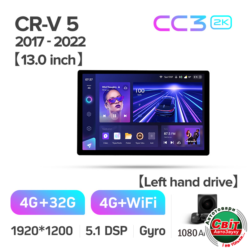 - ›Автомагнітола штатна Teyes CC3 4+32 Gb Honda CR-V CR-V 5 RT RW 2017-2022 13inch 2k
