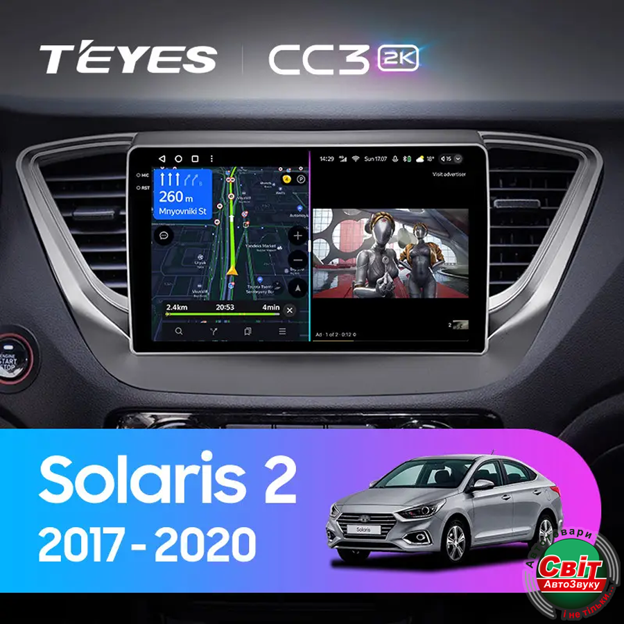 Автомагнітола штатна Teyes CC3 4+32 Gb Hyundai Solaris 2 2017-2020 (A) 9Новий флагманський продукт 2023 року в лінійці штатних автомагнітол Teyes CC3 2K повністю відповідає вимогам сучасних автомобілістів. При його розробці повною мірою реалізовано новітні інтелектуальні рішення, серед яких особливе місце займають такі: