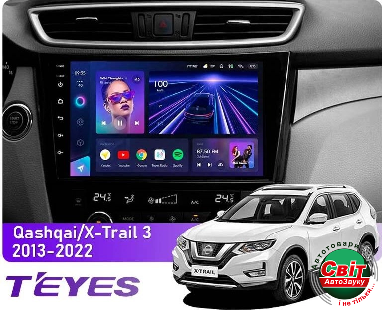 - Головний пристрій TeYes CC3 4+32Gb F2 AB для Nissan X-Trail Rogue, Qashqai 2013-2022 Automatic AC