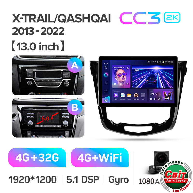 Автомагнітола штатна Teyes CC3 4+32 Gb Nissan X-Trail X Trail 3 T32 2013-2022- (F2) Automatic air conditioning (AB) 13inch 2k
