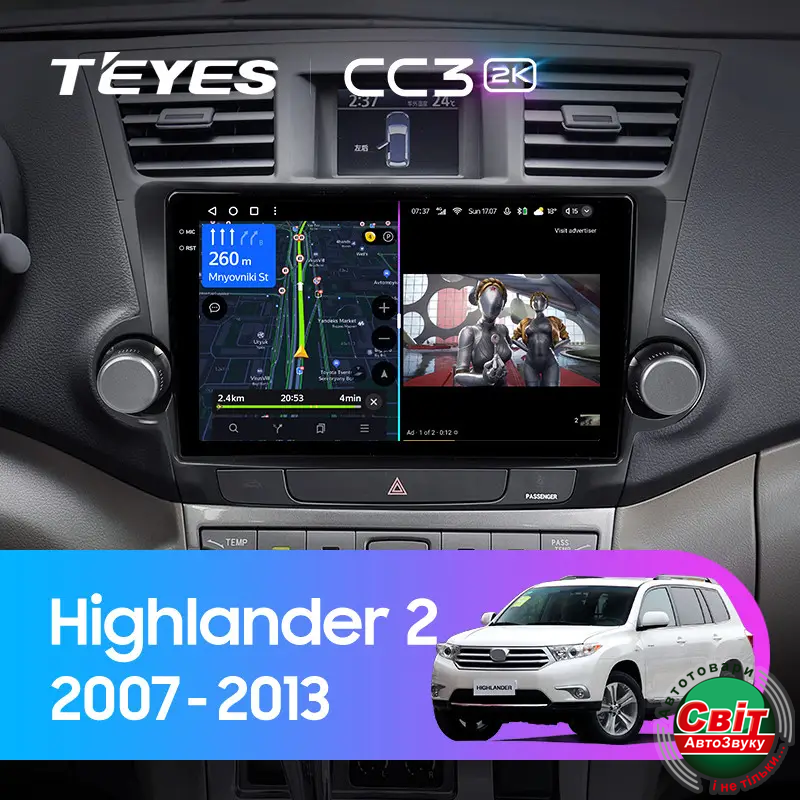 Автомагнітола штатна Teyes CC3 4+32 Gb Toyota Highlander 2 XU40 2007-2013 (A) 10Новий флагманський продукт в лінійці штатних автомагнітол Teyes CC3 2K повністю відповідає вимогам сучасних автомобілістів. При його розробці повною мірою реалізовано новітні інтелектуальні рішення, серед яких особливе місце займають такі: