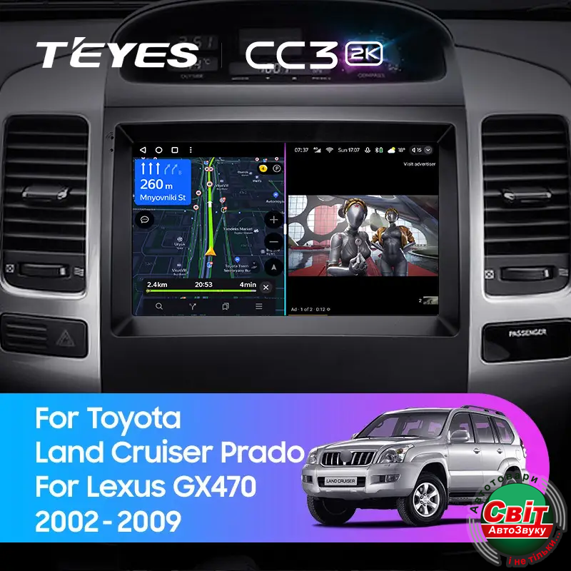 Автомагнітола штатна Teyes CC3 4+32 Gb Toyota Land Cruiser Prado 120 2004-2009 (F2) 9Новий флагманський продукт 2023 року в лінійці штатних автомагнітол Teyes CC3 2K повністю відповідає вимогам сучасних автомобілістів. При його розробці повною мірою реалізовано новітні інтелектуальні рішення, серед яких особливе місце займають такі: