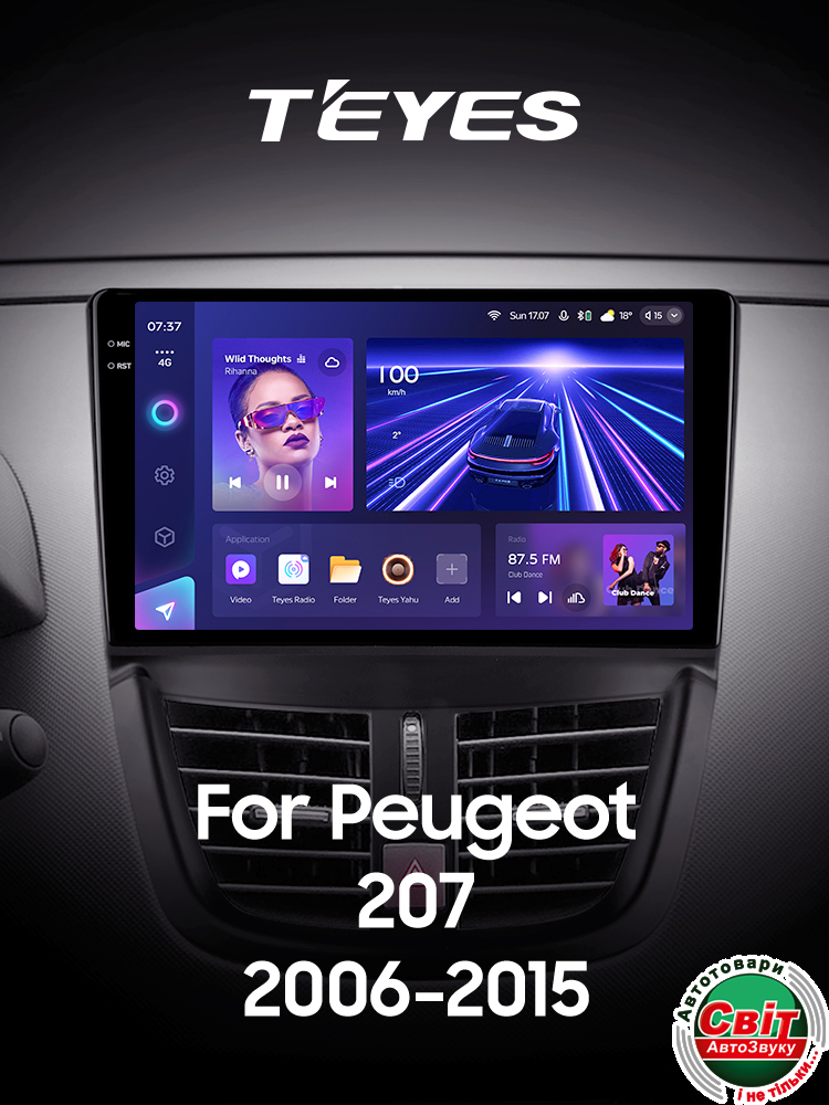 Фото Автомагнітола штатна Teyes CC3 4+64 Gb Peugeot 207 2006-2015 9-inch 2k
