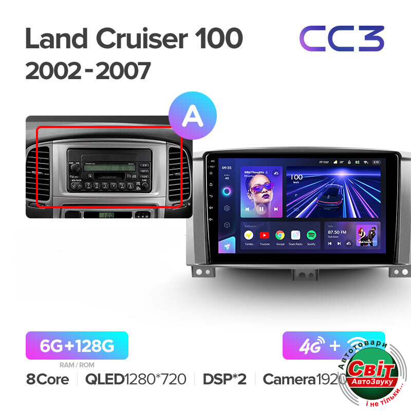 Автомагнітола штатна Teyes CC3 6+128 Gb Toyota Land Cruiser LC 100-B 2002-2007 (A) 10Автомагнітола TeYes CC3 - це сучасний штатний головний пристрій побудований на якісних компонентах, з яким Ви отримаєте швидку швидкість роботи, багатофункціональність та універсальність засновану на новітній операційній системі Android 10, а повна інтеграція з оригінальними системами авто подарує приємні враження від кожної хвилини проведеної в автомобілі.