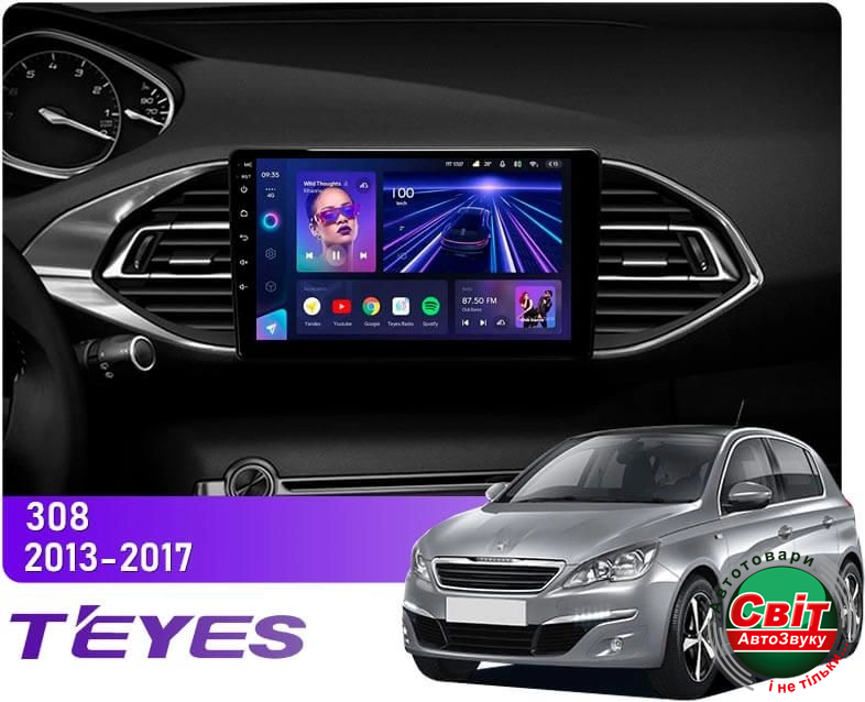 Автомагнітола штатна Teyes CC3L 4+32 Gb Peugeot 308 T9 308S 2013-2017 9Teyes CC3L – спрощена флагманська магнітола Teyes СС3. У неї простіший IPS-екран, немає цифрового та коаксіального виходу. При цьому магнітола підтримує звук 5.1 та можливість підключення CarPlay та Android Auto.