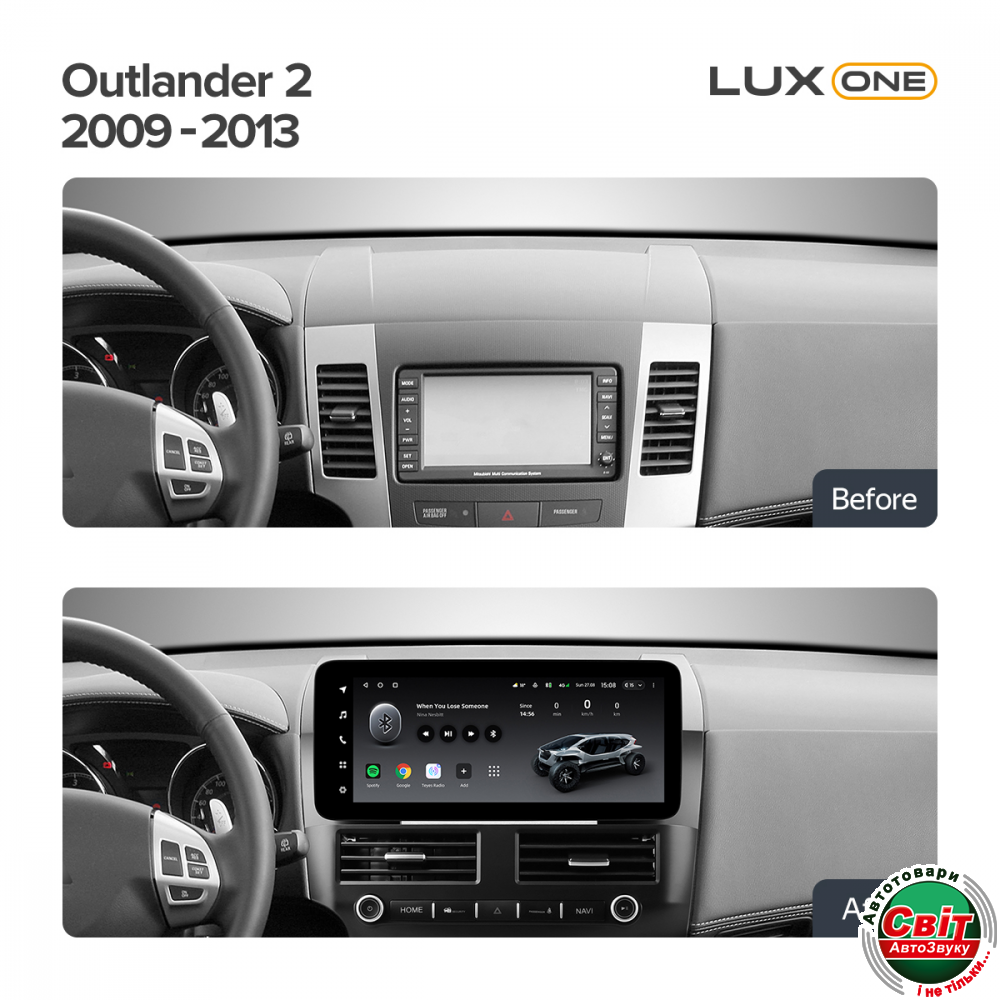 - ›Автомагнітола штатна Teyes Lux One 4+32 Gb Mitsubishi Outlander 2 CW0W 2009-2013 (B) 12.3inch (L2)