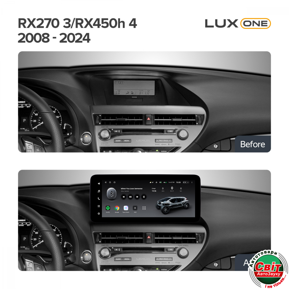 - ›Автомагнітола штатна Teyes Lux One 6+128 Gb Lexus RX270 3 RX450h 3 AL10 2008-2015 RX450h 4 AL20 (A1) 2015-2024 12.3inch (L3)
