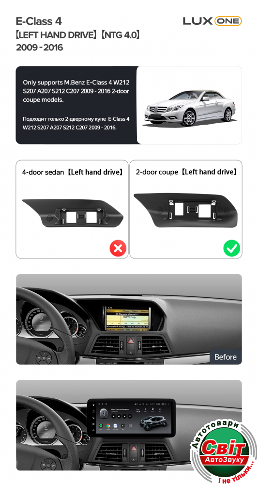 - ›Автомагнітола штатна Teyes Lux One 6+128 Gb Mercedes-Benz E-Class 4 W212 S207 A207 S212 C207 NTG 4.0 (Left hand drive) (F2) 2009-2016 12.3inch