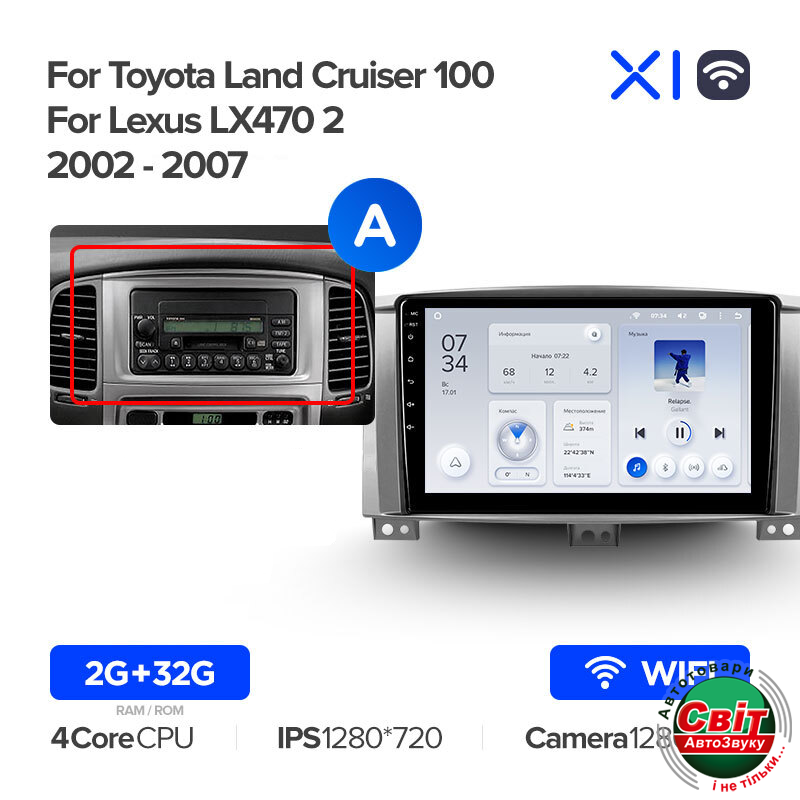 Автомагнітола штатна Teyes X1 2+32Gb Wi-Fi Toyota Land Cruiser LC 100-A 2002-2007 (A) 9Головні пристрої Teyes на ОС Android із оригінальним підсилювачем звуку Toshiba TCB001HQ. 4-ядерний процесор і 2Gb оперативної пам'яті дозволяють впоратися навіть зі складними завданнями швидко та ефективно.