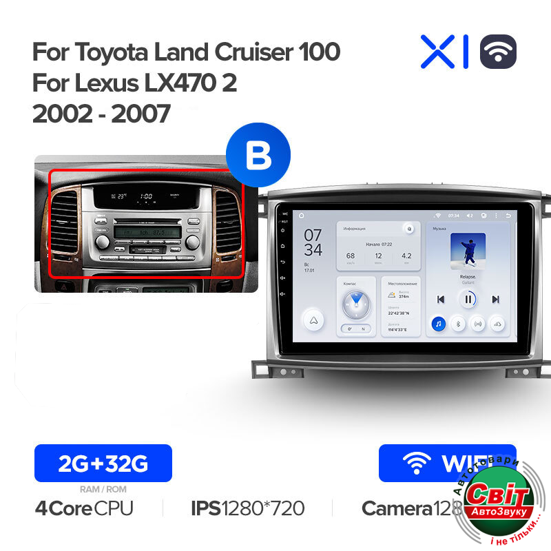 Автомагнітола штатна Teyes X1 2+32Gb Wi-Fi Toyota Land Cruiser LC 100-A 2002-2007 (B) 9