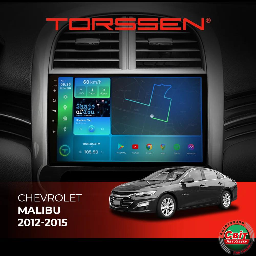 - ›Автомагнітола штатна TORSSEN Chevrolet Malibu 12-15 FL9 4+64Gb 4G Carplay DSP