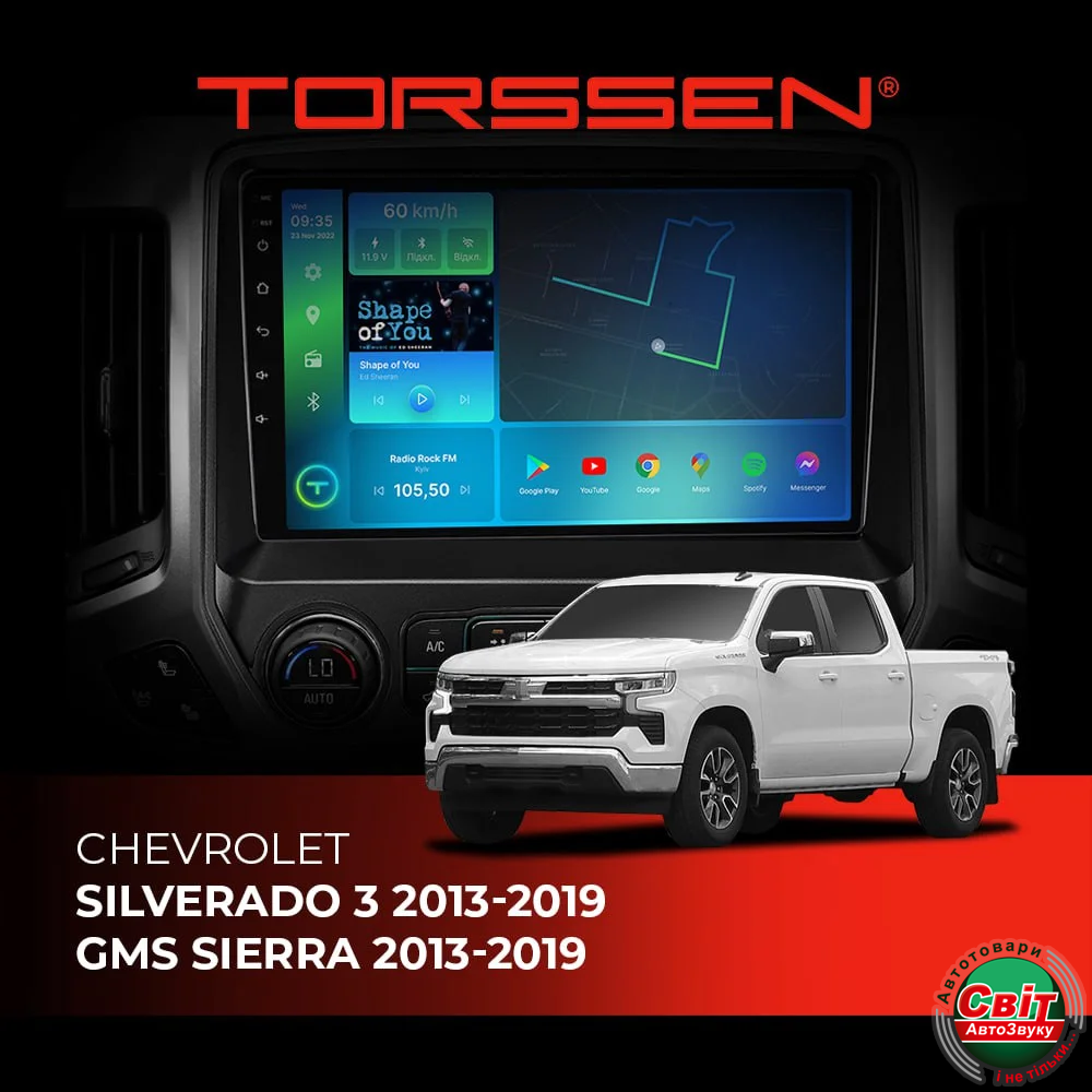 - ›Автомагнітола штатна TORSSEN Chevrolet Silverado 3 13-19 GMS Sierra 13-19 FL9 4+64Gb 4G Carplay DSP
