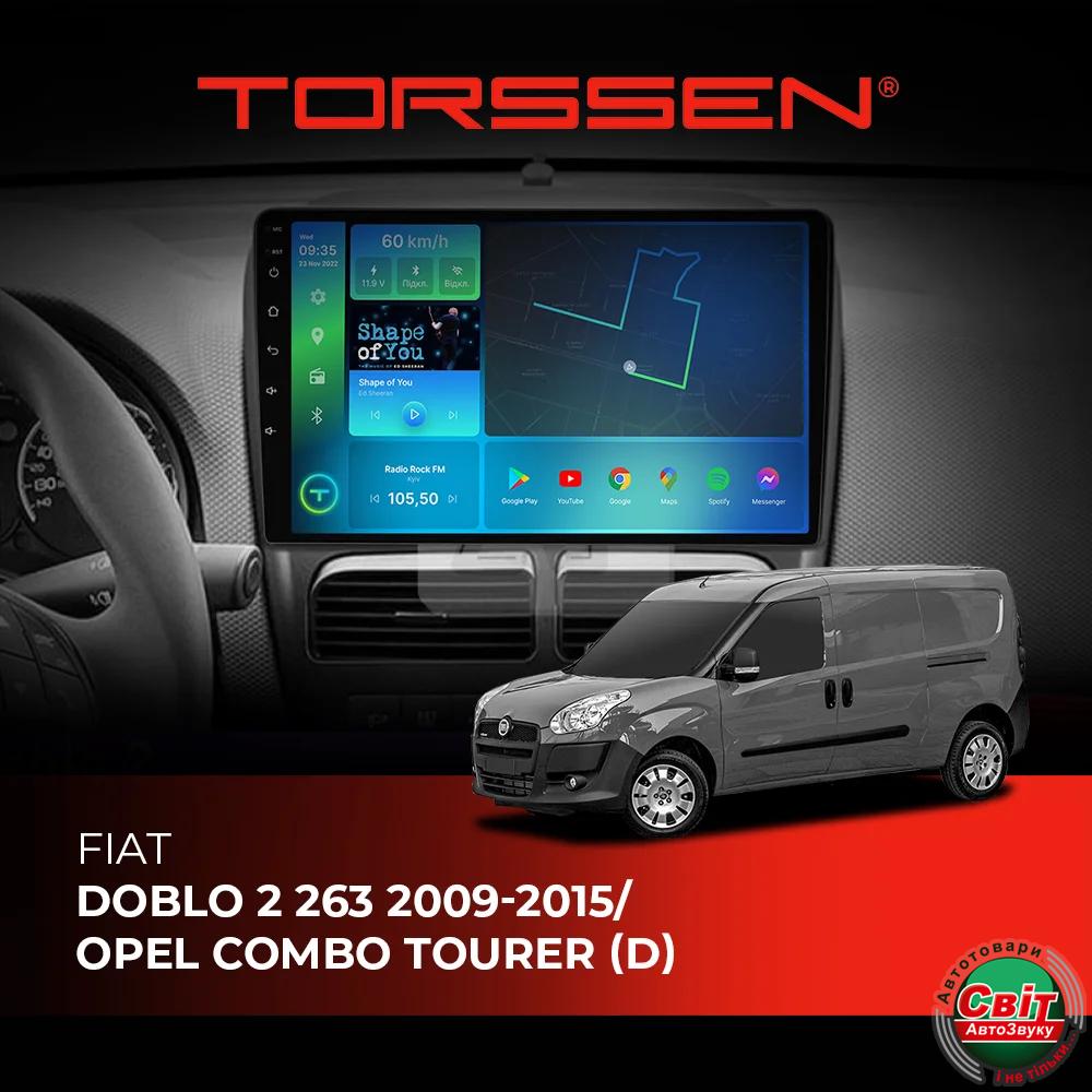 - ›Автомагнітола штатна TORSSEN Fiat Doblo 2 263 09-15/Opel Combo Tourer (D) FL9 4+64Gb 4G Carplay DSP