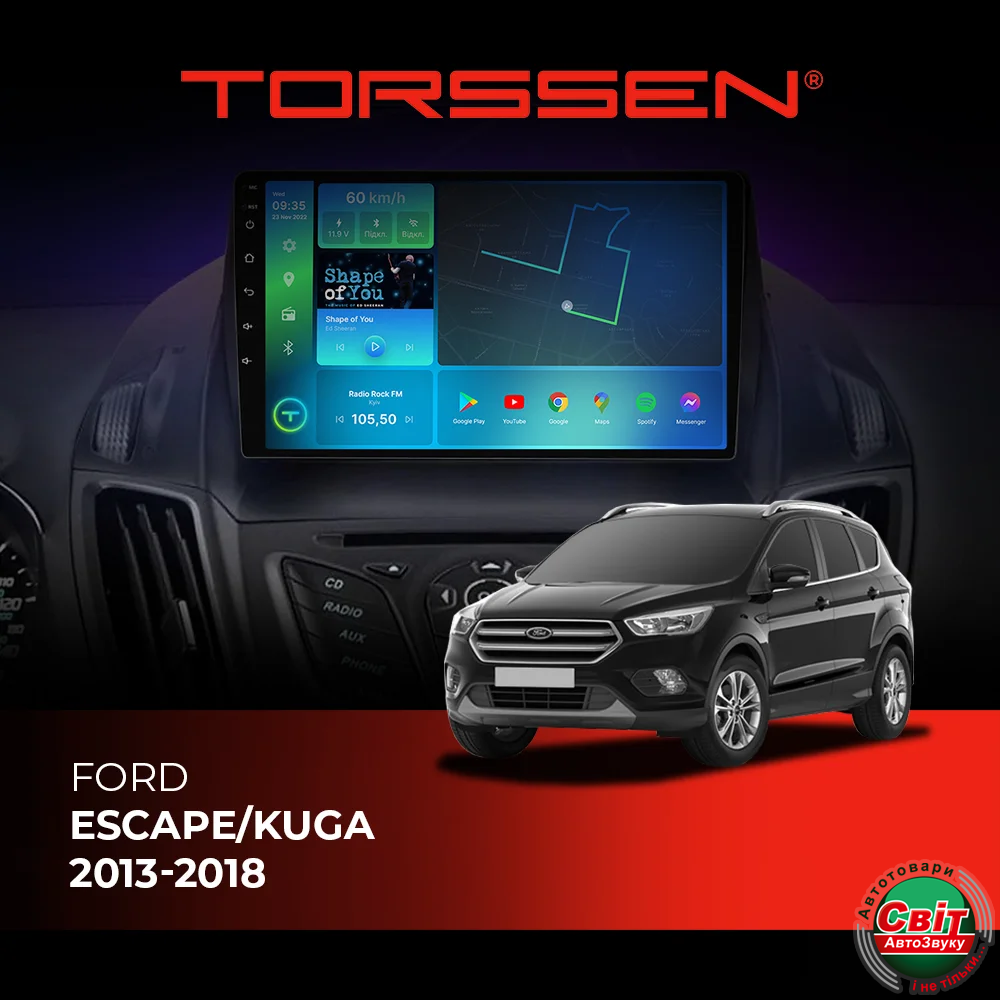 - ›Автомагнітола штатна TORSSEN Ford Escape/Kuga 13-18 FL9 4+64Gb 4G Carplay DSP