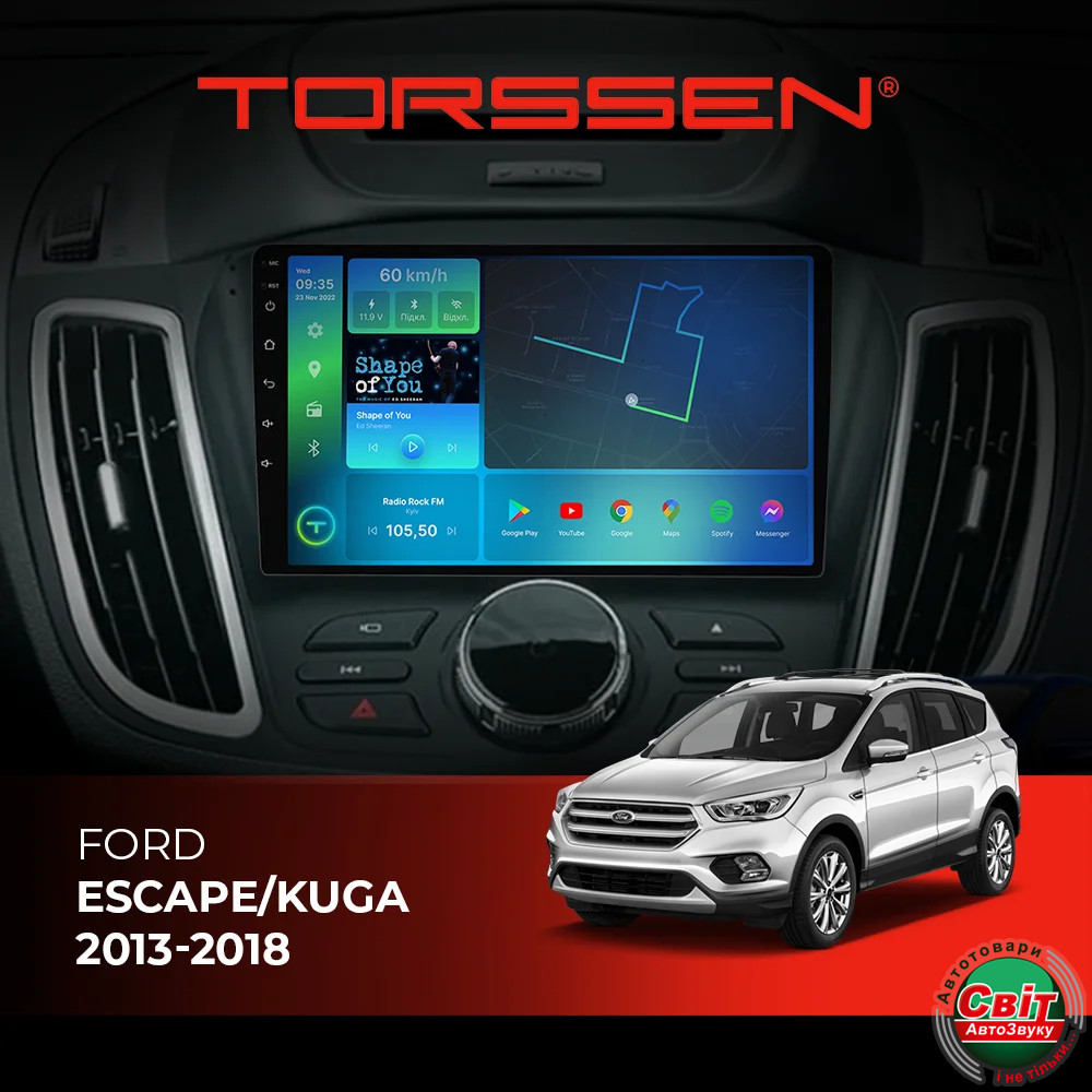 - ›Автомагнітола штатна TORSSEN Ford Escape/Kuga 13-18 LOW END FL9 4+64Gb 4G Carplay DSP