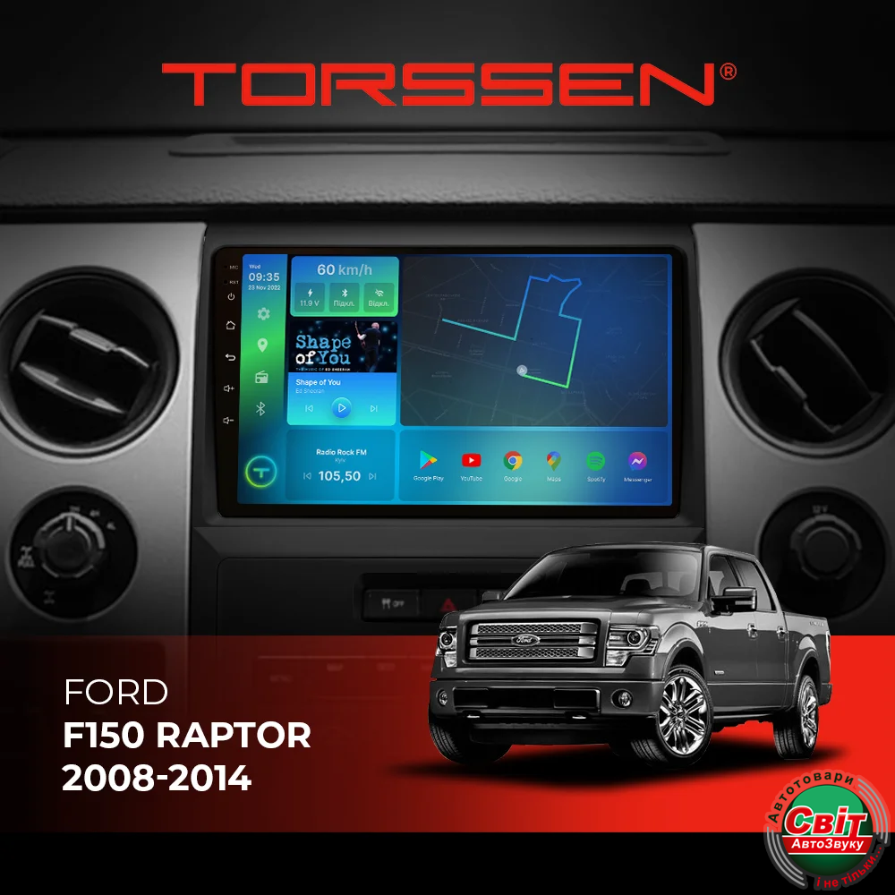 - ›Автомагнітола штатна TORSSEN Ford F150 Raptor 08-14 FL9 4+64Gb 4G Carplay DSP