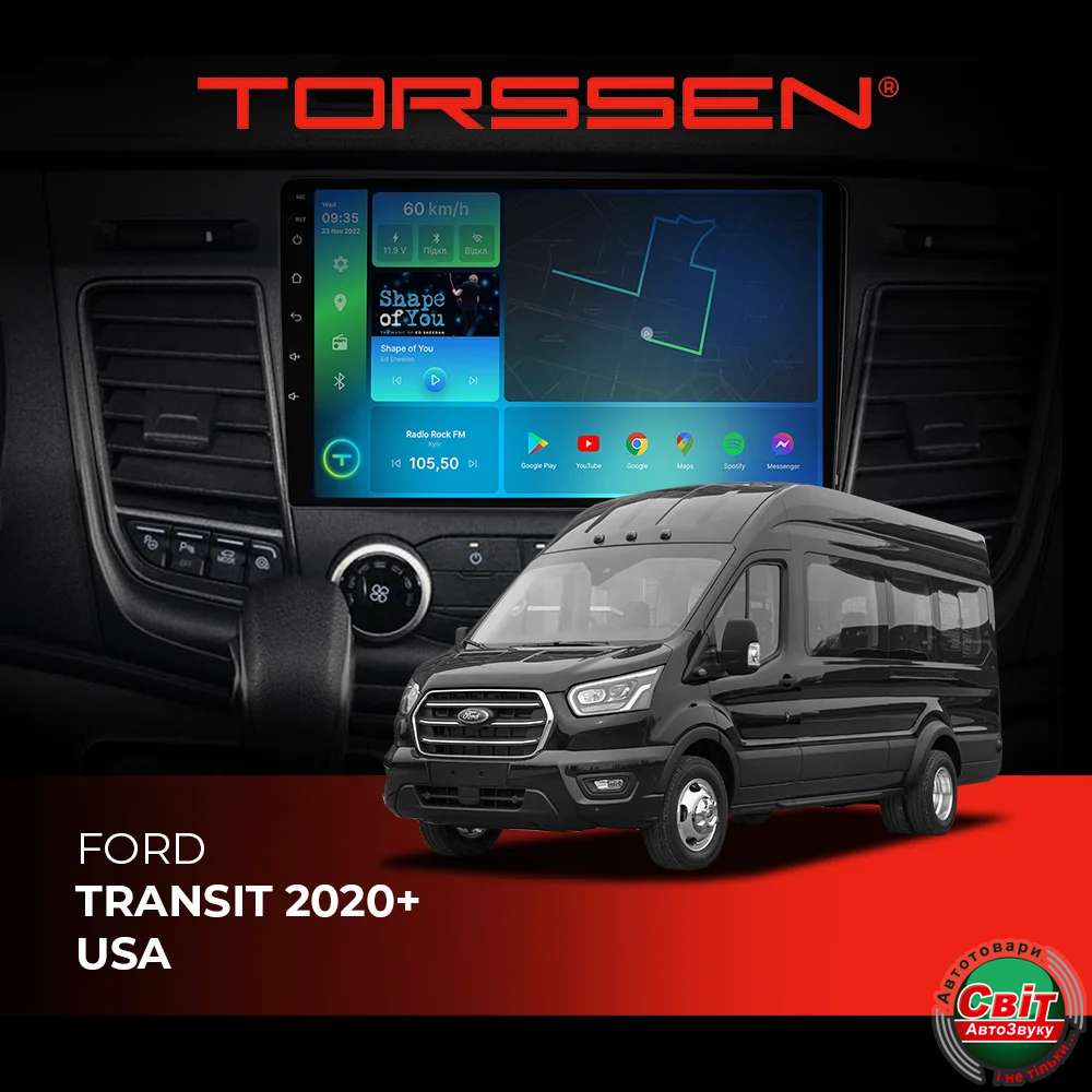 - ›Автомагнітола штатна TORSSEN Ford Transit 2020+ USA FL9 4+64Gb 4G Carplay DSP