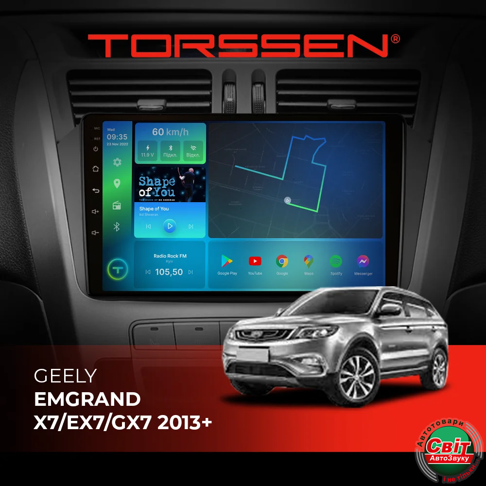 - ›Автомагнітола штатна TORSSEN Geely Emgrand X7/EX7/GX7 2013+ FL9 4+64Gb 4G Carplay DSP