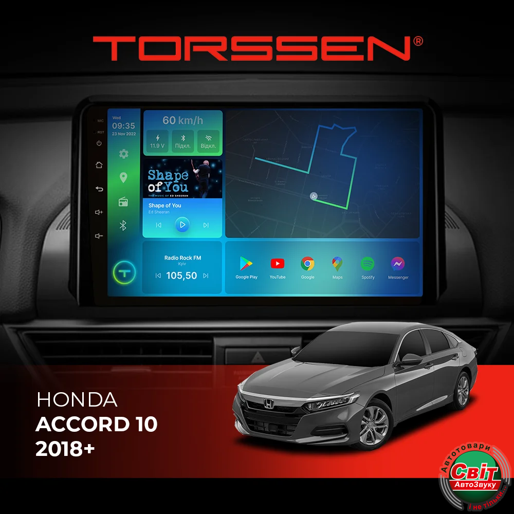 - ›Автомагнітола штатна TORSSEN Honda Accord 10 2018+ NEW FL9 4+64Gb 4G Carplay DSP