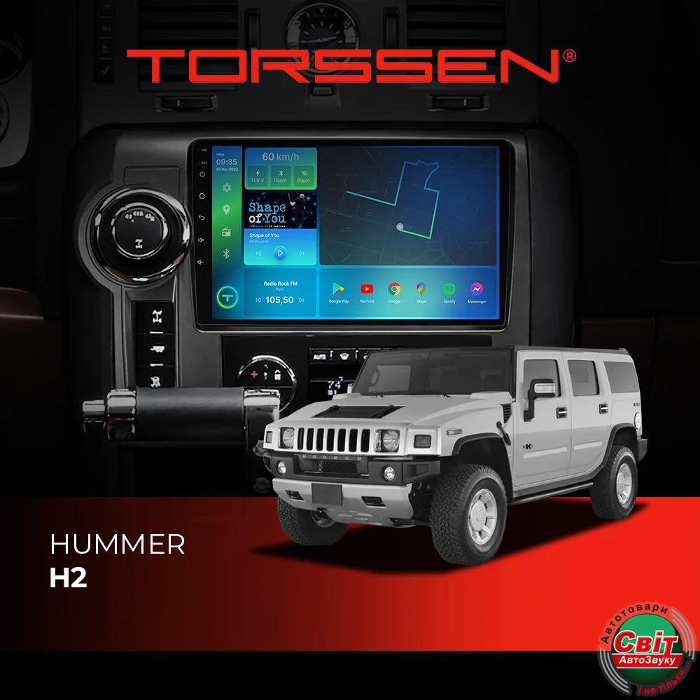 - ›Автомагнітола штатна TORSSEN Hummer H2 FL9 4+64Gb 4G Carplay DSP