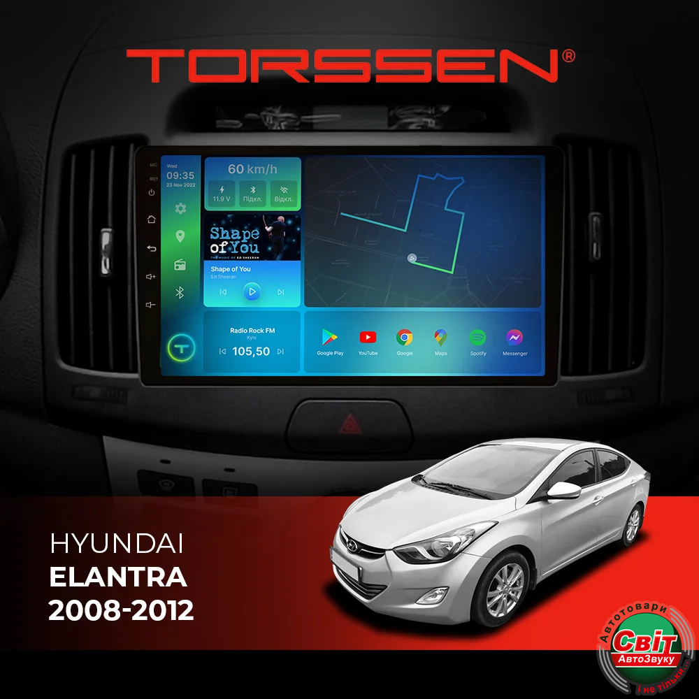 - ›Автомагнітола штатна TORSSEN Hyundai Elantra 08-12 FL9 4+64Gb 4G Carplay DSP