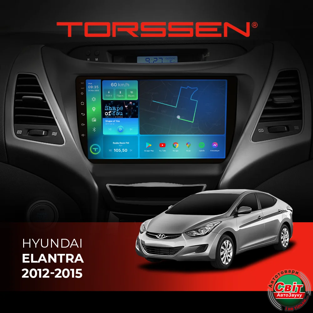 - ›Автомагнітола штатна TORSSEN Hyundai Elantra 2012-2015 FL9 4+64Gb 4G Carplay DSP