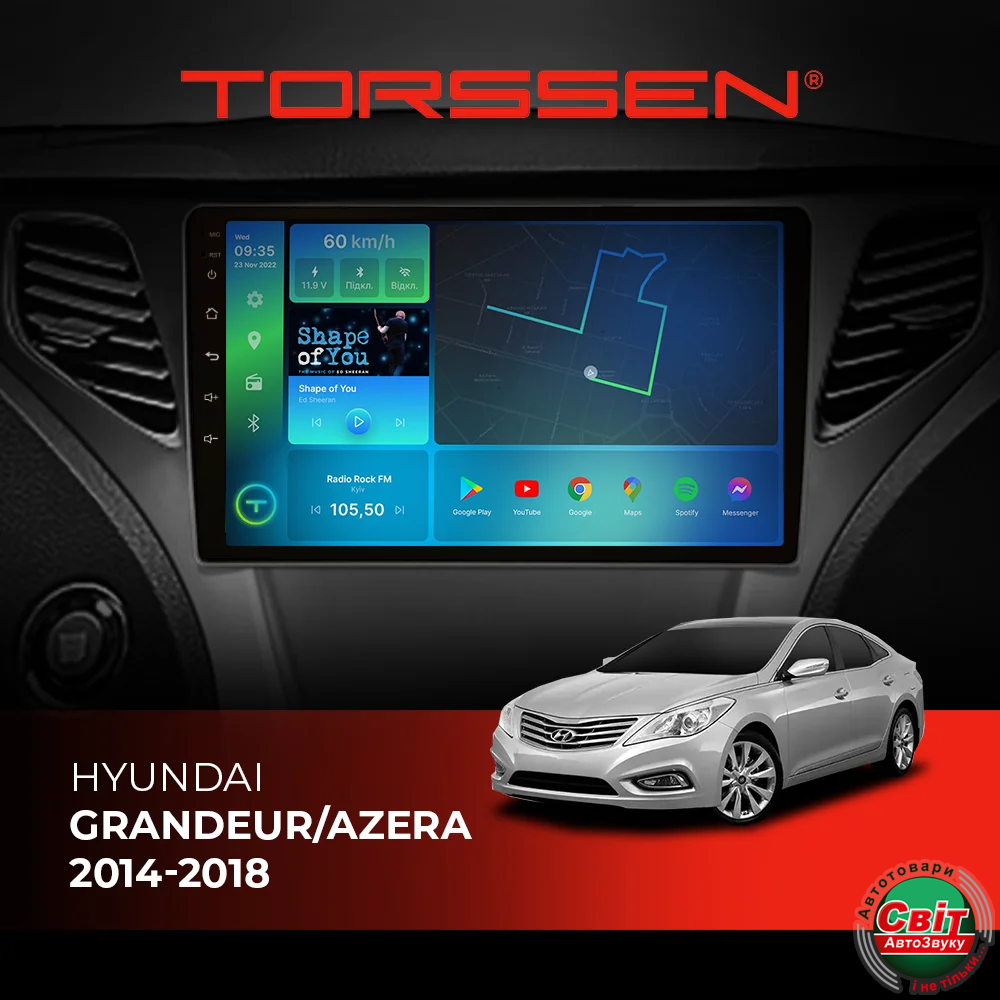 - ›Автомагнітола штатна TORSSEN Hyundai Grandeur/Azera 2014-2018 FL9 4+64Gb 4G Carplay DSP
