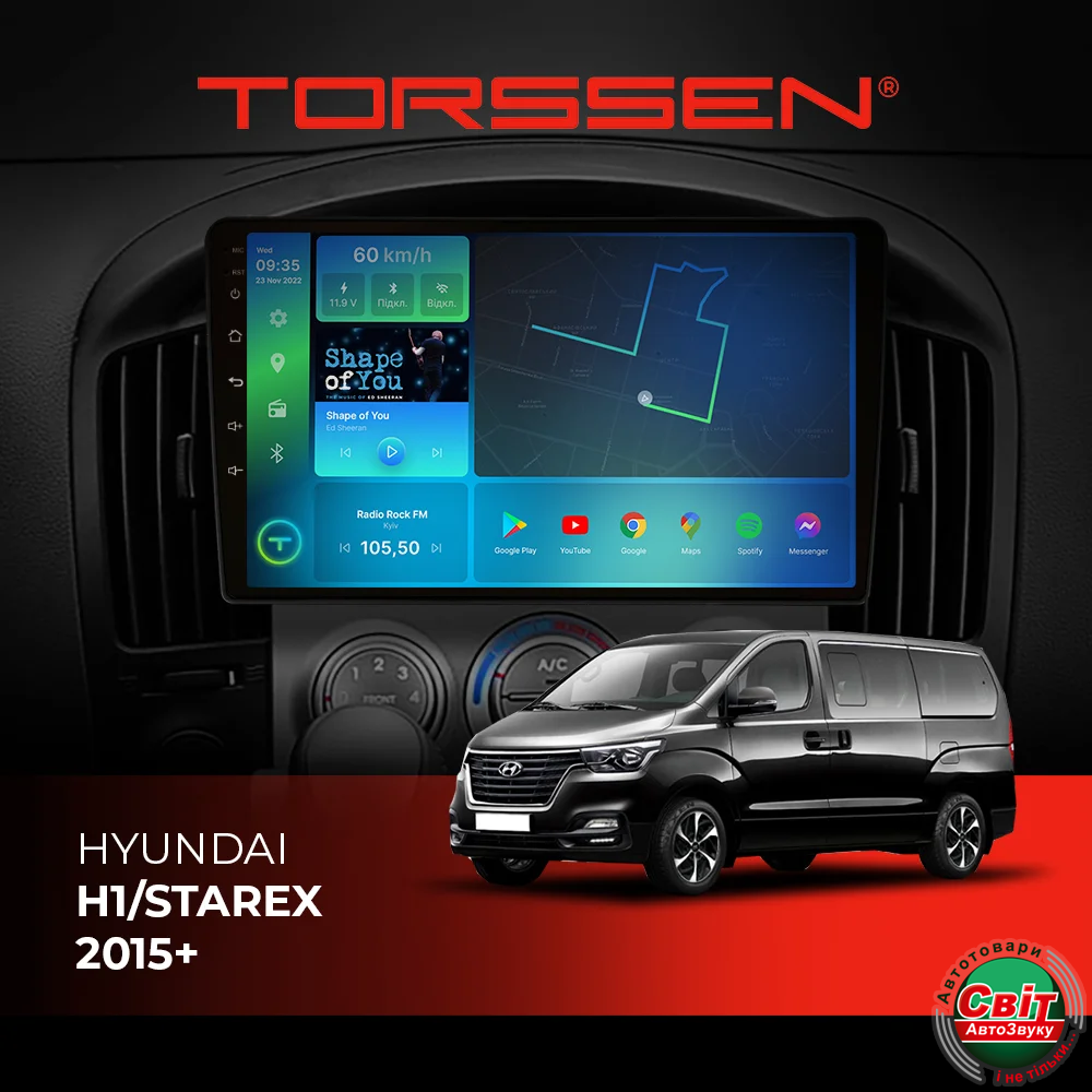 - ›Автомагнітола штатна TORSSEN Hyundai H1/Starex 2015+ FL9 4+64Gb 4G Carplay DSP