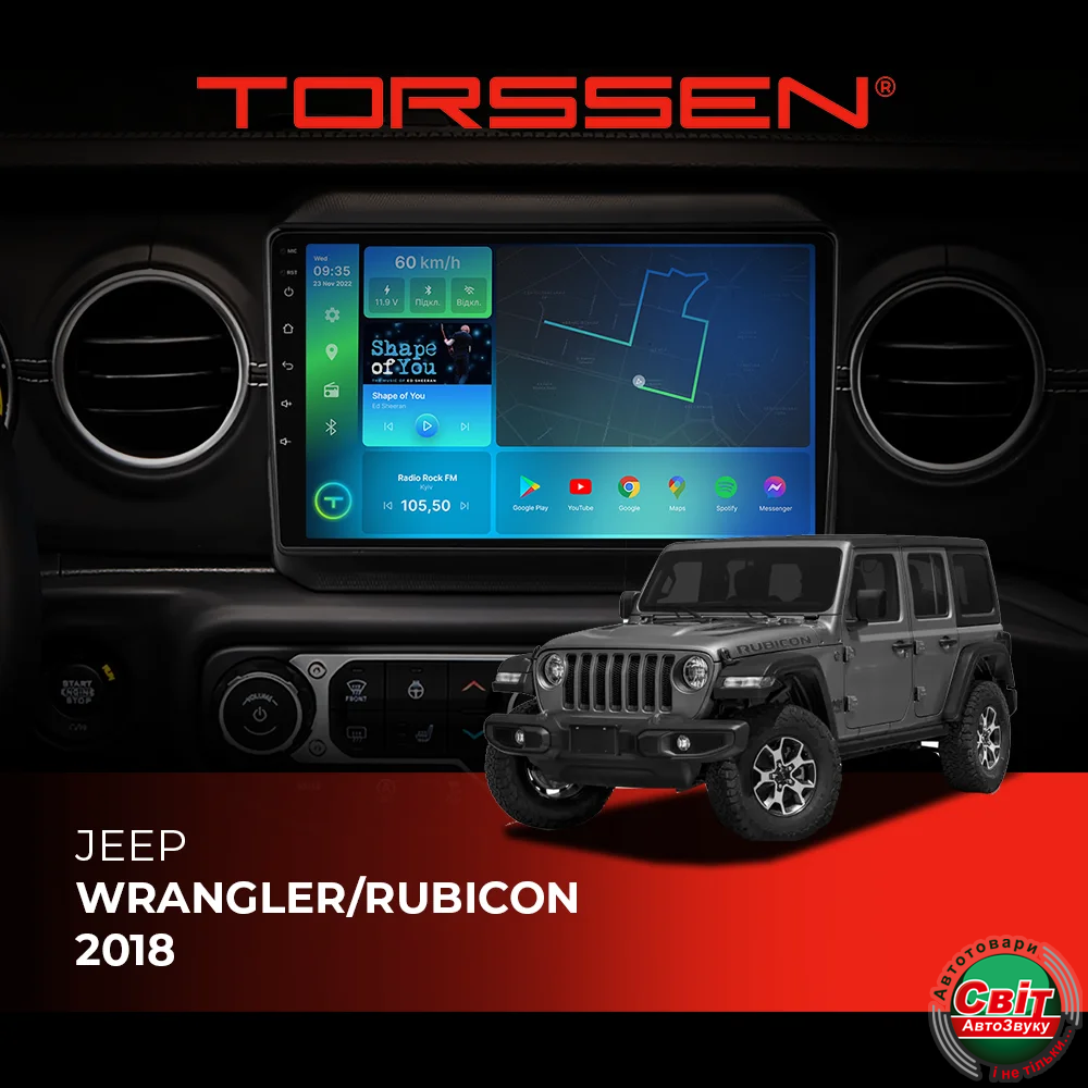 - ›Автомагнітола штатна TORSSEN Jeep Wrangler/Rubicon 2018 FL9 4+64Gb 4G Carplay DSP