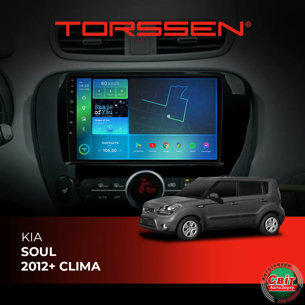 - ›Автомагнітола штатна TORSSEN Kia Soul 2012+ clima FL9 4+64Gb 4G Carplay DSP