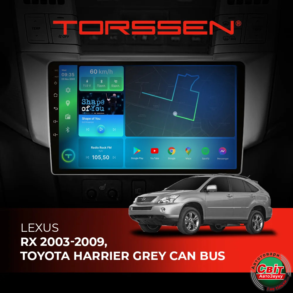 - ›Автомагнітола штатна TORSSEN Lexus RX 03-09, Toyota Harrier Grey CAN BUS FL10 4+64Gb 4G Carplay DSP