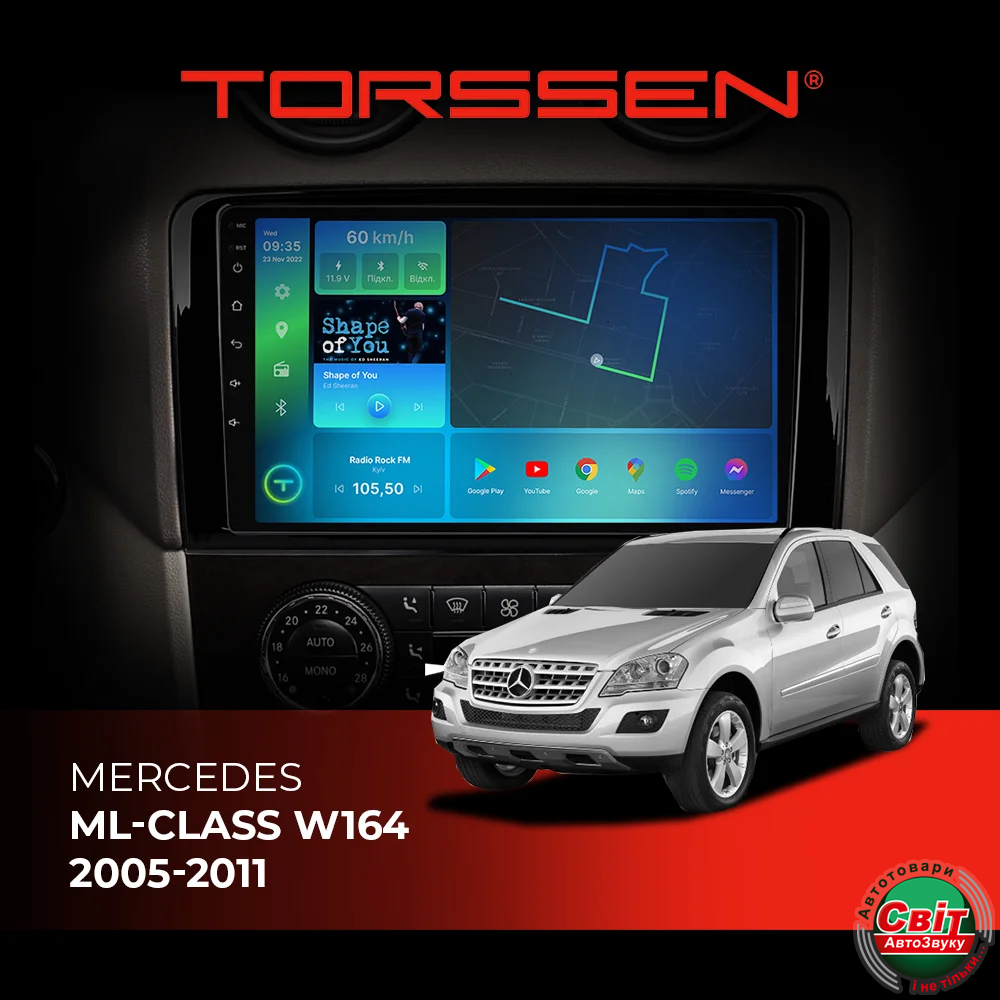 - ›Автомагнітола штатна TORSSEN Mercedes ML-class W164 2005-2011 FL9 4+64Gb 4G Carplay DSP