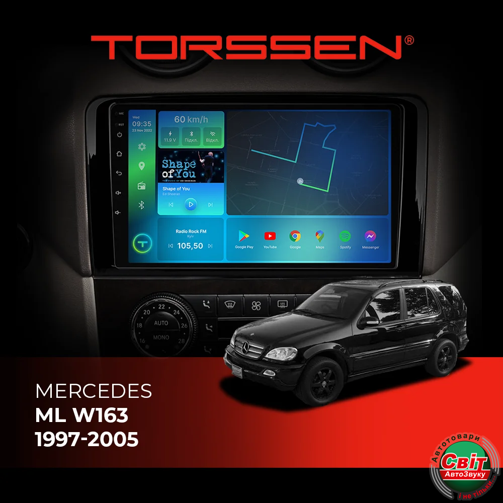 - ›Автомагнітола штатна TORSSEN Mercedes ML W163 1997-2005 FL9 4+64Gb 4G Carplay DSP