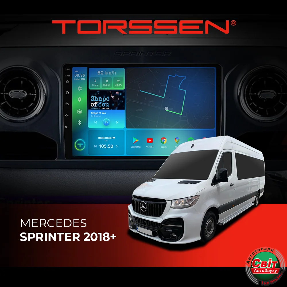 - ›Автомагнітола штатна TORSSEN Mercedes Sprinter 2018+ FL10 4+64Gb 4G Carplay DSP