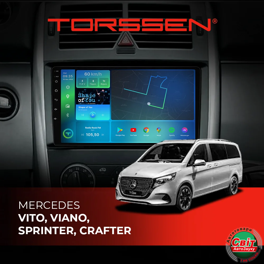 - ›Автомагнітола штатна TORSSEN Mercedes Vito, Viano,Sprinter, Crafter FL9 4+64Gb 4G Carplay DSP