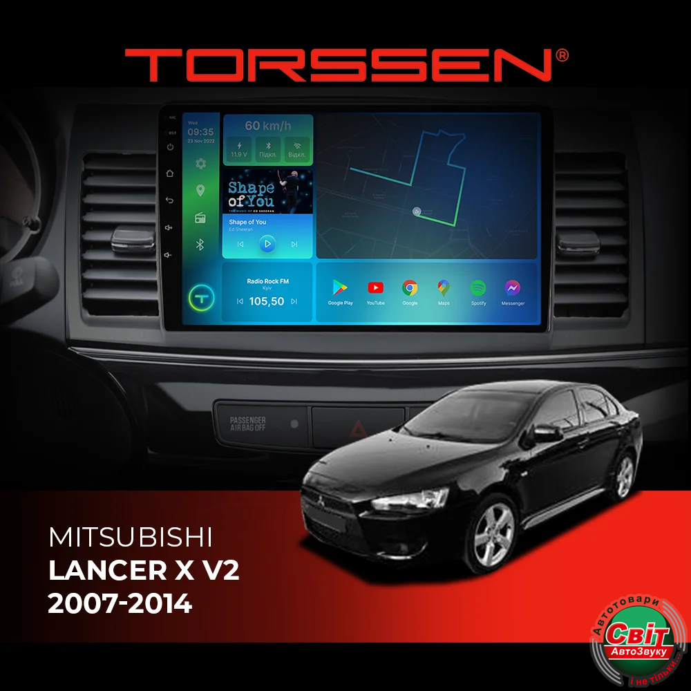 - ›Автомагнітола штатна TORSSEN Mitsubishi Lancer X V2 2007-2014 FL9 4+64Gb 4G Carplay DSP