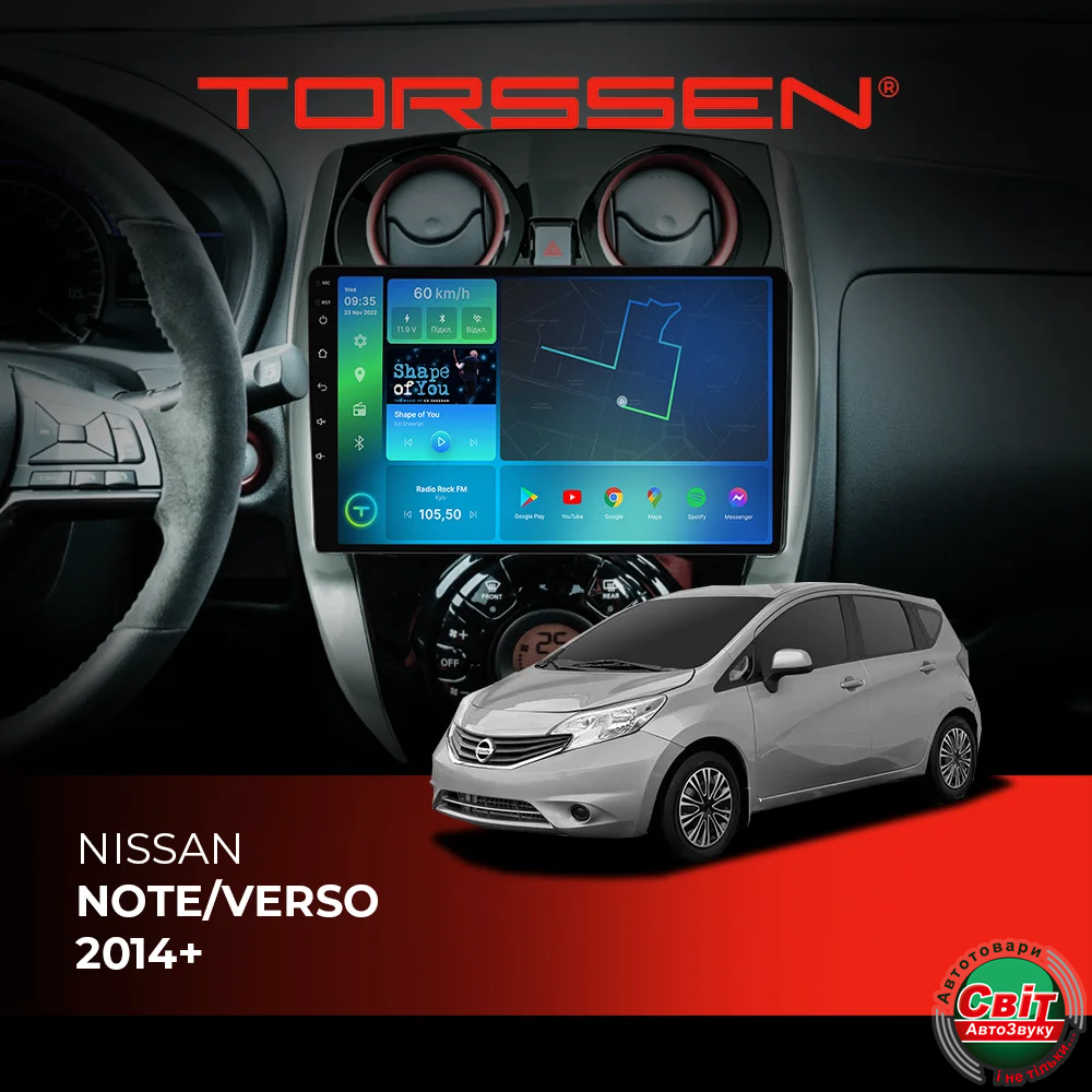 - ›Автомагнітола штатна TORSSEN Nissan Note/Verso 2014+ FL10 4+64Gb 4G Carplay DSP