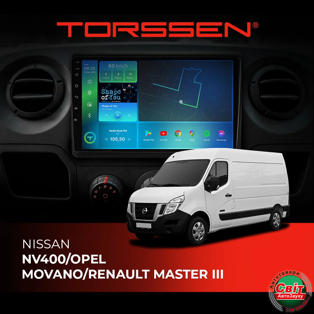 Фото Автомагнітола штатна TORSSEN NISSAN NV400/OPEL MOVANO/RENAULT MASTER III FL10 4+64Gb 4G Carplay DSP