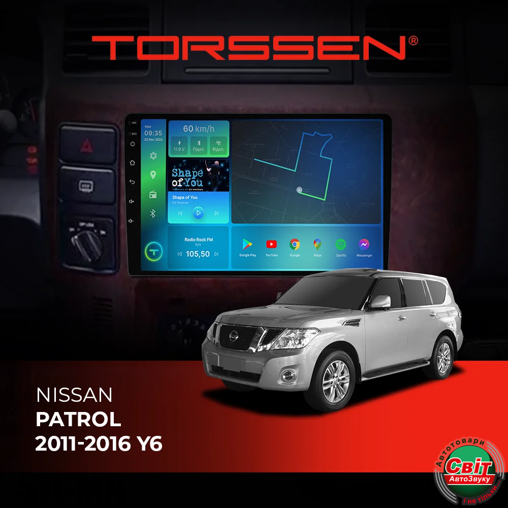 - ›Автомагнітола штатна TORSSEN Nissan Patrol 11-16 Y6 FL9 4+64Gb 4G Carplay DSP