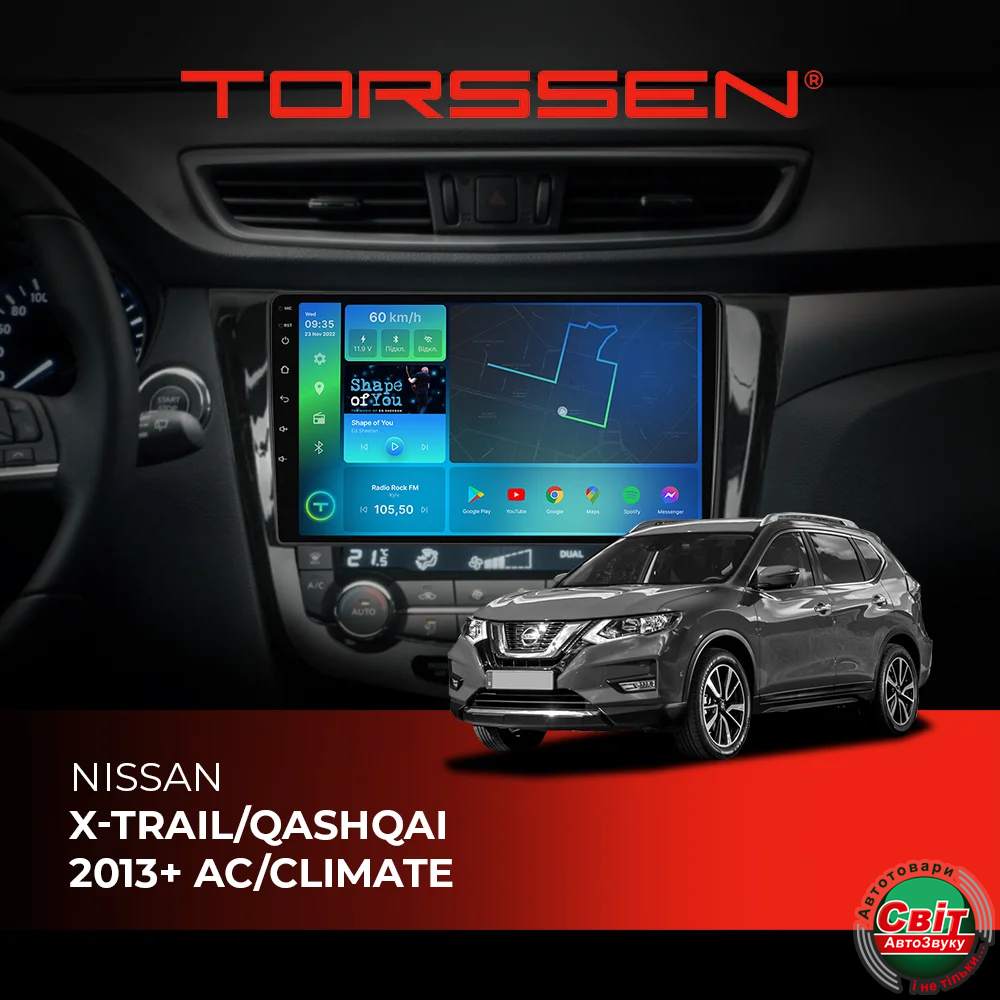 - ›Автомагнітола штатна TORSSEN Nissan Xtrail/Qashqai 2013+ AC/Climate FL10 4+64Gb 4G Carplay DSP