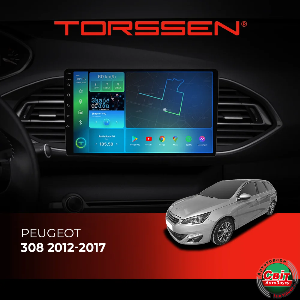 - ›Автомагнітола штатна TORSSEN Peugeot 308 2012-2017 FL9 4+64Gb 4G Carplay DSP