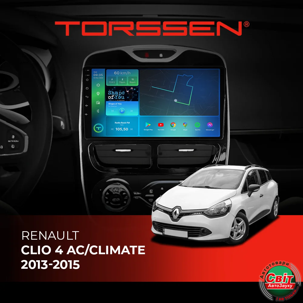 - ›Автомагнітола штатна TORSSEN Renault Clio 4 AC/Climate 13-15 FL9 4+64Gb 4G Carplay DSP