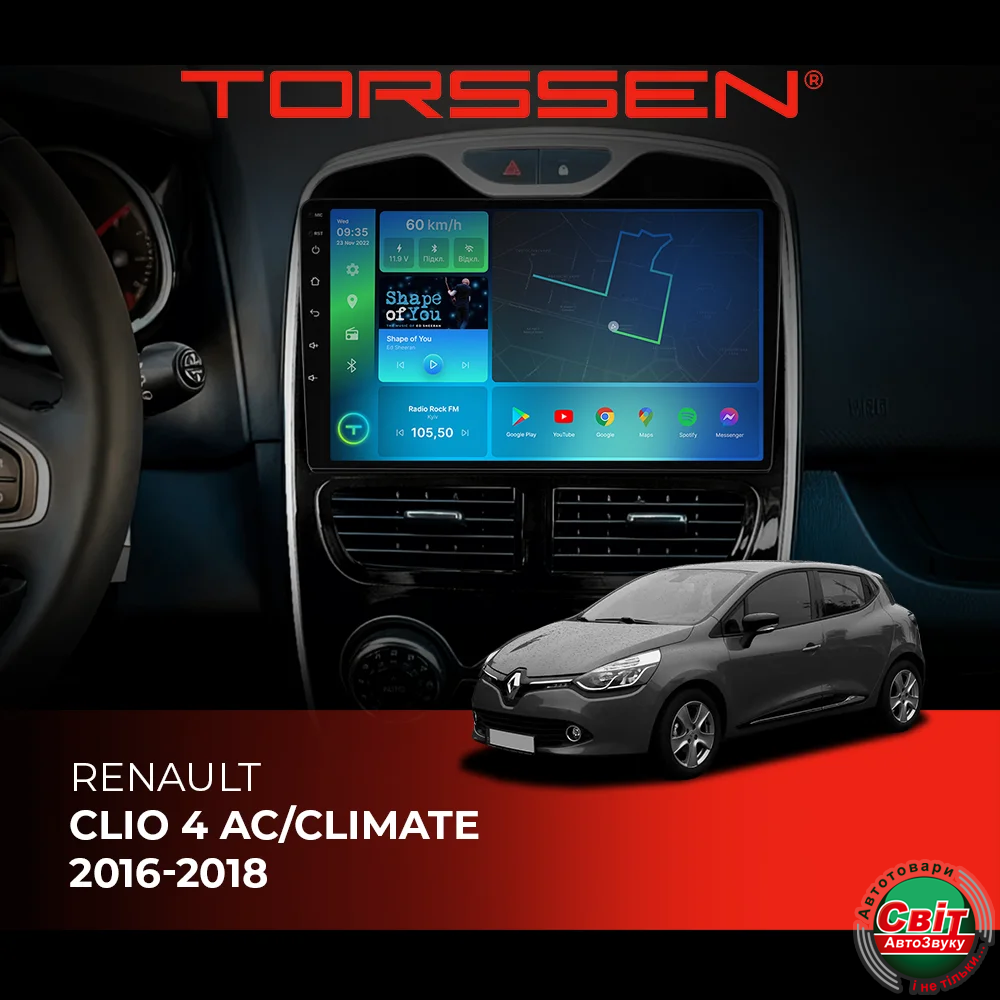 Фото Автомагнітола штатна TORSSEN Renault Clio 4 AC/Climate 16-18 FL9 4+64Gb 4G Carplay DSP